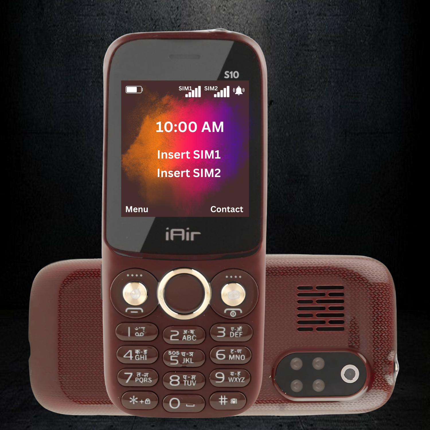 iAir S10 - Coffee Dual Sim Keypad Phone | 2800 mAH Battery & Big 2.4 Inch Display | Big Torch Light | Wireless FM & Rear Camera | Auto Call Recording | 32 MB Ram & Expandable Storage 128 GB