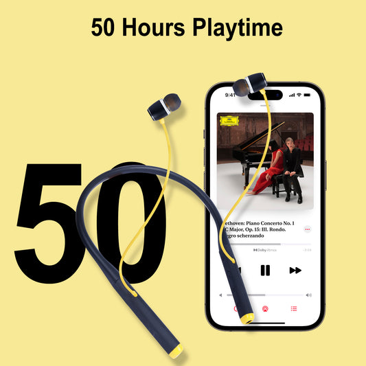 iAir Rockstar New | 50 Hrs playtime | Deep Bass | 10mm Driver | Dual Pairing | IPX5 | Bluetooth (Mate Black & Yellow, In the Ear)