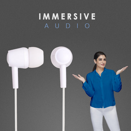 iAir H15 3.5mm Stereo Wired in-Ear Earphones with Mic, Volume Control, Bass Boosted, Clear Audio, Multifunction Button, Stylish Eartips, 1.2 Meter Durable Cable, Lightweight Design (White)
