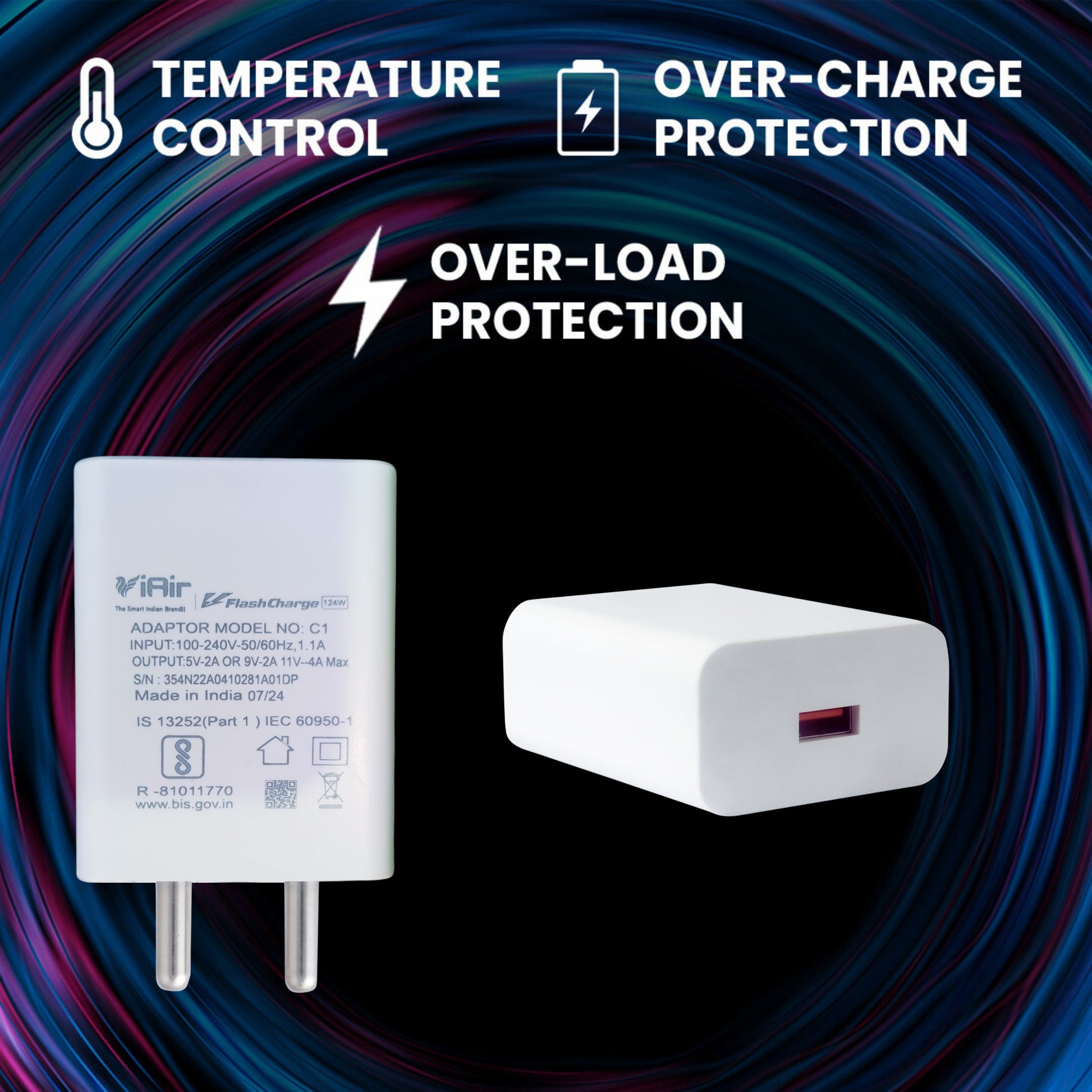 iAir C1 124W Charging Qualcomm Adaptor l USB Charging Port l Super Fast Charger l Compatible with OPPO/REALME/ONEPLUS, VOOC/DASH/WARP/DART/SUPERVOOC, Compatible with All Phones)
